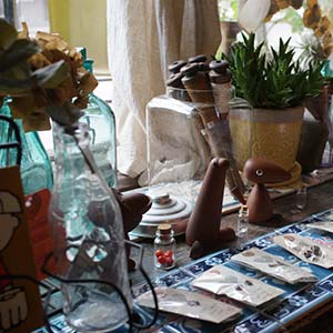 USA買い付けのビンテージ&アンティーク雑貨やヨーロッパ・日本のアンティーク雑貨など一点物が店内所狭しと並んでおります。アクセサリーやレザーアイテムは全行工程を1人の手作業で行なう仙台の職人の方々が作る心のこもった作品を扱っております。